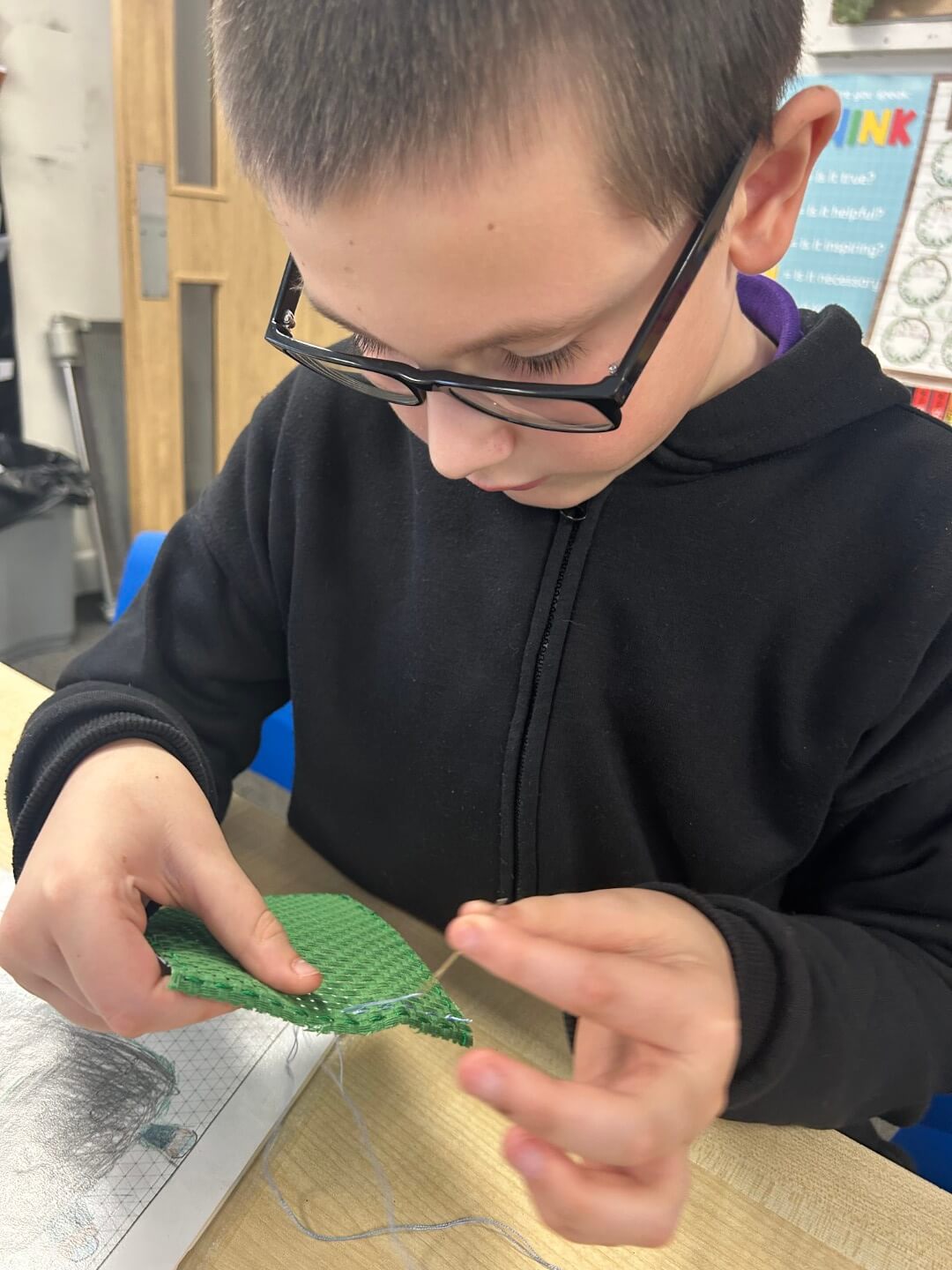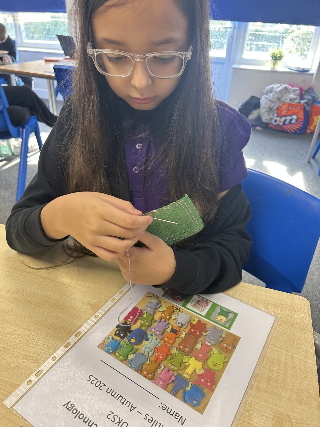 This week, Y6 have been busy practising sewing skills in Design Technology. The pupils have been learning how to thread a needle, using running stitches and joining fabric securely. This is in preparation for creating their very own worry monsters. It has been wonderful to see their enthusiasm and confidence growing as they develop these practical skills.
