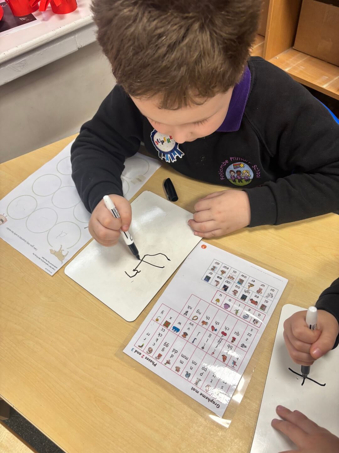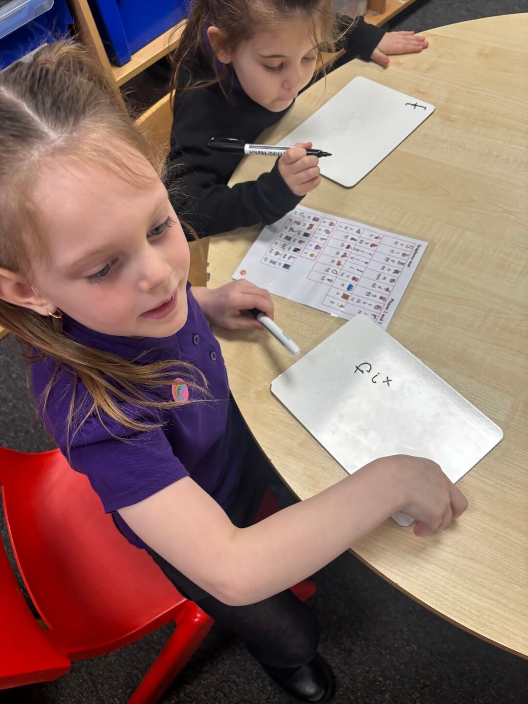 Today, EYFS put their problem-solving skills to the test during Phonics. They carefully segmented words, blended the sounds together, and used their grapheme mats to practise correct letter formation while writing some fantastic words.