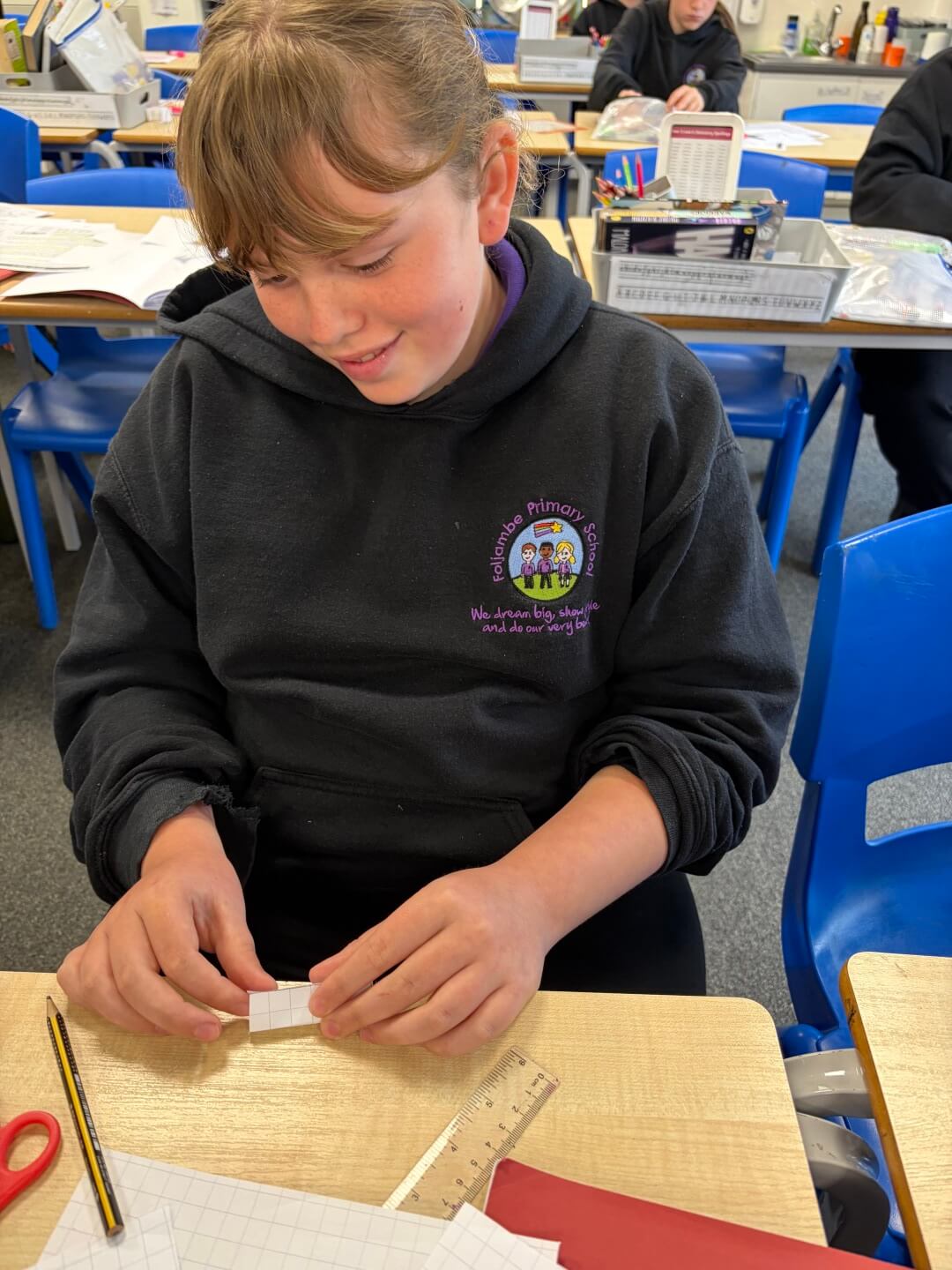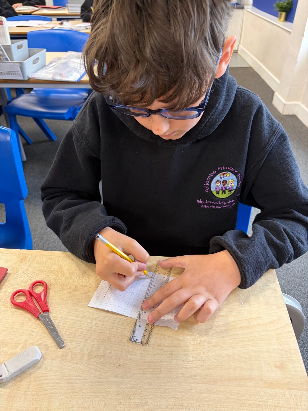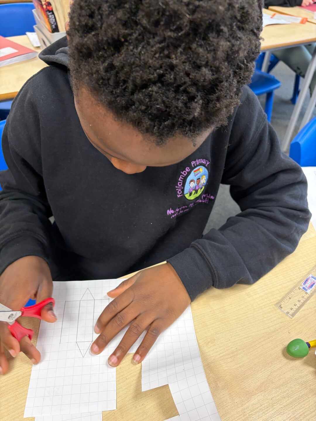 Today, Y6 enjoyed exploring 3D shapes, learning how to recognise and describe their properties, including faces, edges, and vertices. They showed great curiosity as they investigated how different shapes are constructed, discussing their similarities and differences along the way.